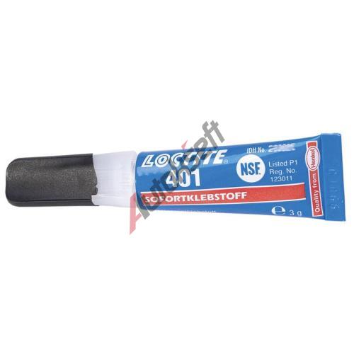 Vteřinové lepidlo Loctite 401 je určen pro lepení obtížně lepitelných, materiálů, které vyžadují rovnoměrné zatížení a velkou pevnost v tahu, a/nebo ve smyku. Tento produkt umožňuje rychlé lepení široké škály, materiálů, včetně kovů, plastů a elastomerů. Je přednostně určen pro, lepení porézních a savých materiálů jako je dřevo, papír, kůže a, tkaniny. Toto vteřinové lepidlo lepí během několika sekund a lepená, spára se vyznačuje dokonalým vzhledem. Produkt je použitelný jako, lepidlo na kůži, na korek, na papír i na tkaninu.