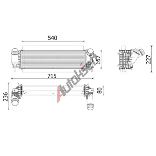 Typ chlazení: chlazený vzduchemDélka sítě [mm]: 540Šířka sítě [mm]: 154Hloubka sítě [mm]: 80Provedení chladiče: Kühlrippen pájenýEAN:8718042329509NISSAN144614JA0BRENAULT144614JA0BKonkurenční kódy