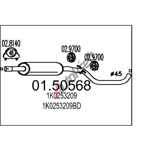Všeobecné informace: When selecting a product via a reference number, the exact area of use for the vehicle must be checked! MTS ‐ Střední tlumič výfuku MTS 01.50123