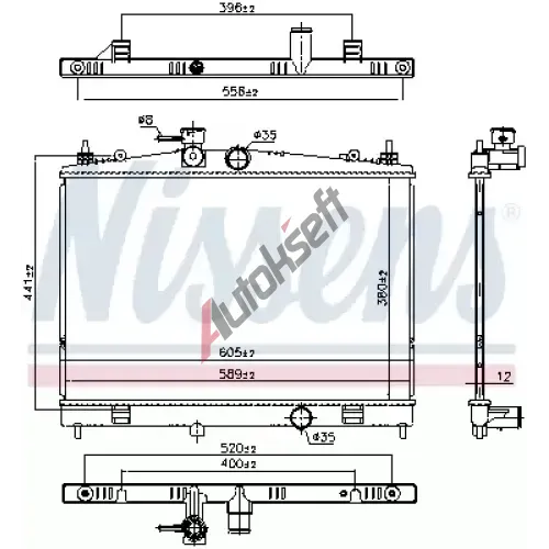 NISSAN21410BA60AKonkurenční kódyVšeobecné informace: The core dimensions / product measurements of the different manufacturers /vendors might be different due to various production technologies. These dimensions / product measurements are not an indication for the performance or the correct fitting accuracy of the product itself. NISSENS ‐ Chladič - chlazení motoru NIS 63502