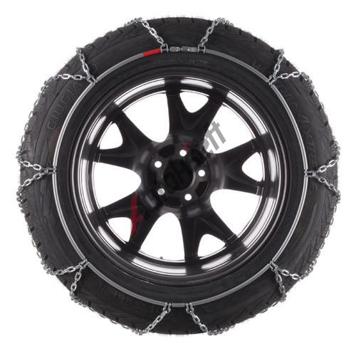 Špičkový řetěz pro vozy SUV s montáží bez pojíždění se servo technologií., Odolný kuličkový uzávěr na vnitřní straně řetězu umožnuje jednoduché uzavření řetězu v podběru., Nová generace automaticky dopínacích ráčen, ve kterých je použitá převratná servo technologie, zaručují optimální stejnoměrné dopínání během jízdy tak, že není nutné další zastavení a manuální dopínání., Články řetězové sítě z materiálu o síle 3.55 mm jsou vhodné jak pro použití na zasněžených silnicích, tak i polních cestách., Dbejte pokynů výrobce vozidla kvůli dostatečnému prostoru v podbězích., INFOTEXT:Sněhové řetězy jsou vratné do čtyř dnů!