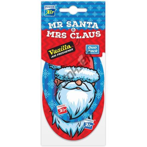 Sada dvou kusů papírových osvěžovačů vzduchu na gumičce k zavěšení do volného prostoru. Ve veselém vánočním designu pana Santy a paní Clausové.