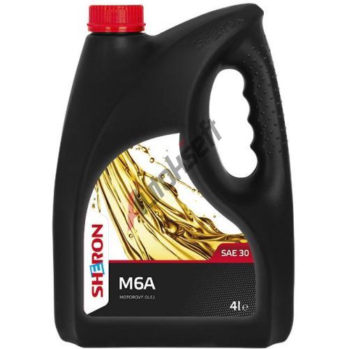SHERON M6A je jednostupňový (letní) motorový olej viskozitní třídy SAE 30 pro mazání starých typů benzinových a nepřeplňovaných dieselových motorů pracujících pod běžným nebo lehkým zatížením s nízkými požadavky na užitné vlastnosti maziva.