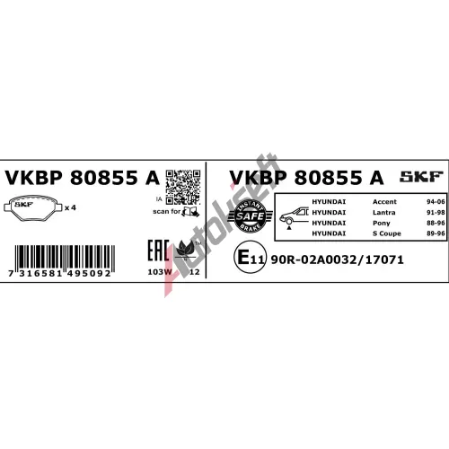SKF Sada brzdových destiček SK VKBP80855A, VKBP 80855 A