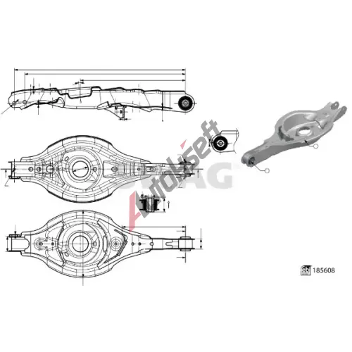 Všeobecné informace: Námi dodané výrobky jsou výhradně určeny k použití v souladu s jejich určením. Namontování smí provádět pouze vyškolený odborný personál. Výrobky se pravideln dodávají bez návodu k montáži. FEBI ‐ Rameno zavěšení kol FB 185608
