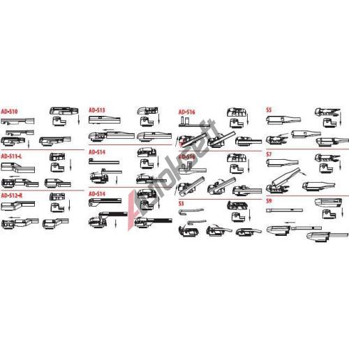 | - 12 adaptérů v balení; díky kterým stěrač sedne na většinu běžných ramínek. | |