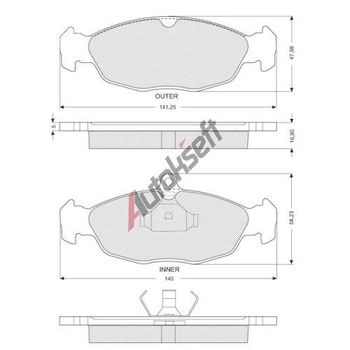 399,-ve skladuKvalita, jakost: 300šířka [mm]: 140,1Šířka 2 [mm]: 141,3Výška [mm]: 58,3Výška 2 [mm]: 48,1Tloušťka / síla [mm]: 16,8Provedení nápravy: Front & Rearčíslo technické informace: 180858Brzdový systém: ATEZkušební značka: E1 90R-01030/134Hmotnost [kg]: 1,28EAN:8424073010643Použitá čísla: 20547, 21311, 21353, D1139-8250, D688-7563Skladem ve skladu