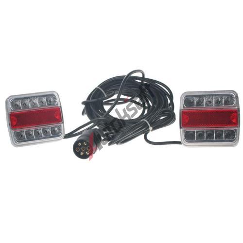 2x sdružená lampa zadní LED včetně kabeláže a připojení 7pin DIN konektorem., Uchycení lamp na magnet. Napájení 12V., Směrové, brzdové, poziční, osvětlení registrační značky, odrazový element - obdélník., Homologace E4-14196., Délka kabelu mezi lampami - 250cm, délka kabelu s konektorem 7pin - 700cm., Určeno např. pro označení nadměrného nákladu, přívěsného vozíku nebo jízdních kol upevněných na nosiči nebo 5-tých dveřích.
