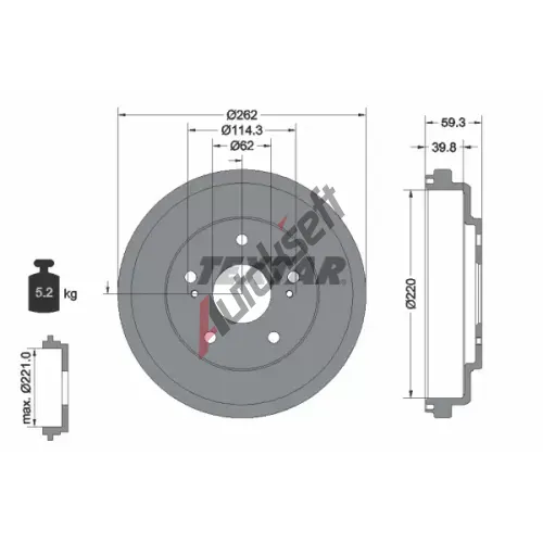 | Výška brzdového bubnu celková [mm]: | 59 |