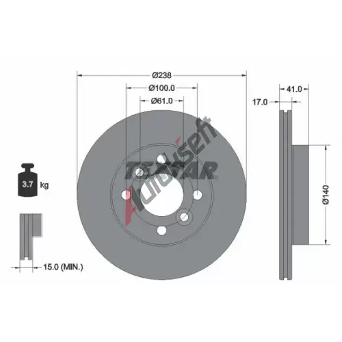 TEXTAR Brzdový kotouč PRO - 238 mm TXT 92350903, 92350903