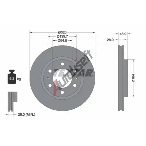TEXTAR Brzdový kotouč PRO - 320 mm TXT 92353203, 92353203