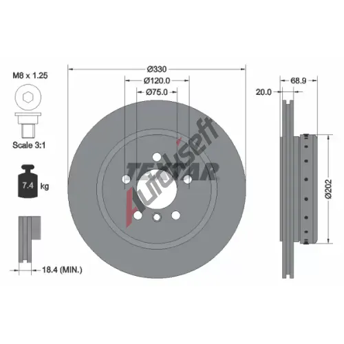 669,-ve skladuSrovnávací průměr: 330Výška [mm]: 68,9Typ brzdového kotouče: dvoudílný brzdový kotouč chlazenýSíla brzdového kotouče [mm]: 20Minimální tloušťka [mm]: 18,4Vnější průměr [mm]: 330Počet děr: 5Centrovací průměr [mm]: 75EAN:4260530798785BMW34 21 6 775 287 (34216775287)34 21 6 793 127 (34216793127)34 21 6 898 733 (34216898733)6 775 287 (6775287)6 793 127 (6793127)6 898 733 (6898733)Konkurenční kódySkladem ve skladu