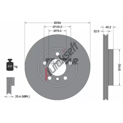 Srovnávací průměr: 294Vnější průměr [mm]: 293,6Síla brzdového kotouče [mm]: 22,2Minimální tloušťka [mm]: 20,4Výška [mm]: 45,2Kruhový vývrt ∅ [mm]: 120Typ brzdového kotouče: chlazenýCentrovací průměr [mm]: 79Počet děr: 5Povrch: nátěrZpracování: vysoce nauhličenoSplňuje ECE normu: ECE-R90Průměr vývrtu do [mm]: 16,5EAN:4047024886926Použitá číslaBD1557, E1 90R-02C0074/0631