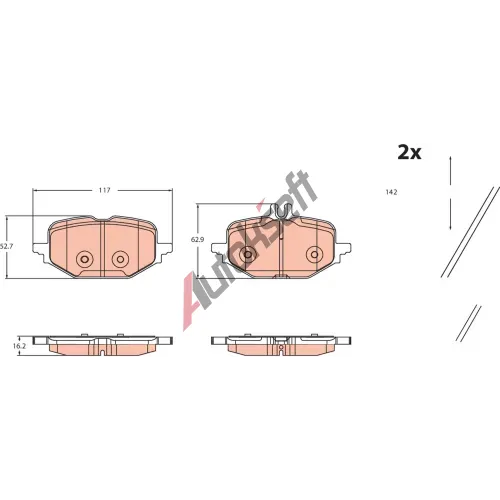 2 099,-ve skladuKód FMSI: D2501-9733Zkušební značka: E9 90R-02A0825/5797Brzdový systém: ZFDoplňkový výrobek / doplňkové info 2: s krycím plechemDoplňkový vyrobek / doplňkové info: bez příslušenstvíWVA číslo: 26526Materiál třecího obložení: Low-metallicUzavírací výstražný kontakt: pro uzavírací výstražný ukazatelŠířka 1 [mm]: 117,1Šířka 2 [mm]: 117,1Výška 1 [mm]: 62,8Výška 2 [mm]: 52,4Tloušťka/síla 1 [mm]: 16,2Tloušťka/síla 2 [mm]: 16,2EAN:5012759583326MERCEDES-BENZ0004201304A0004201304Konkurenční kódySkladem ve skladu