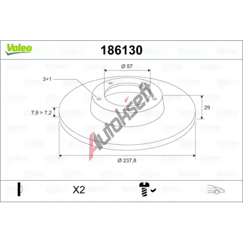 VALEO Brzdový kotouč - 238 mm VA 186130, 186130