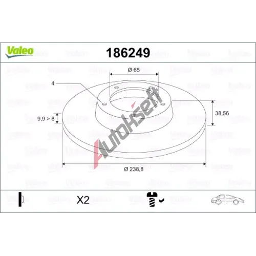 VALEO Brzdový kotouč - 239 mm VA 186249, 186249