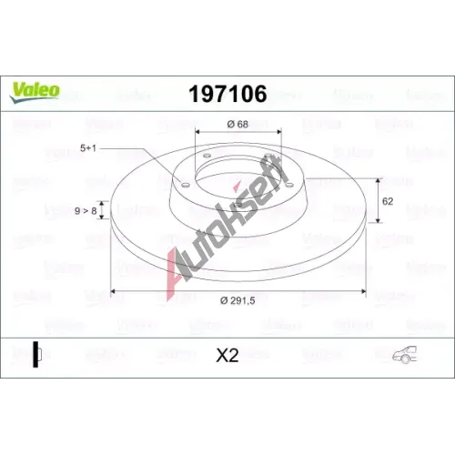 VALEO Brzdový kotouč - 292 mm VA 197106, 197106
