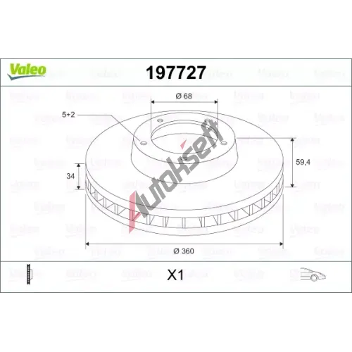 VALEO Brzdový kotouč - 360 mm VA 197727, 197727