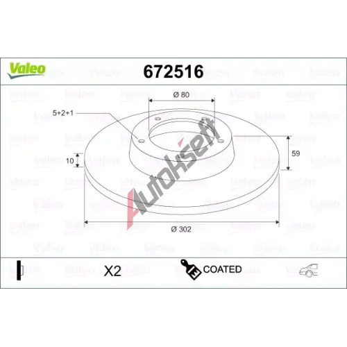 VALEO Brzdový kotouč COATED - 302 mm VA 672516, 672516VALEO Brzdový kotouč COATED - 302 mm VA 672516, 672516