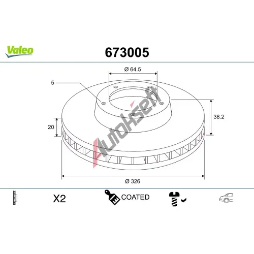 VALEO Brzdový kotouč COATED - 326 mm VA 673005, 673005