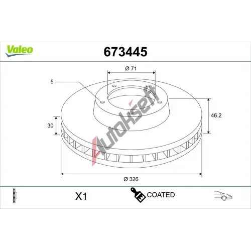 VALEO Brzdový kotouč COATED - 326 mm VA 673445, 673445