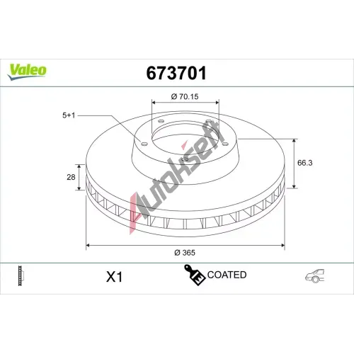 VALEO Brzdový kotouč COATED - 365 mm VA 673701, 673701
