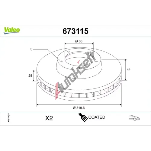 VALEO Brzdový kotouč COATED VA 673115, 673115