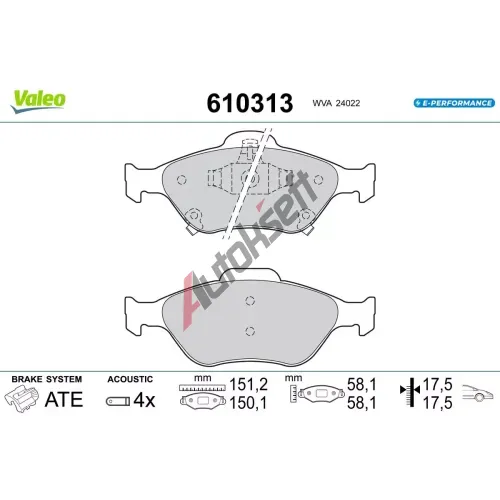 VALEO Sada brzdových destiček E-PERFORMANCE VA 610313, 610313