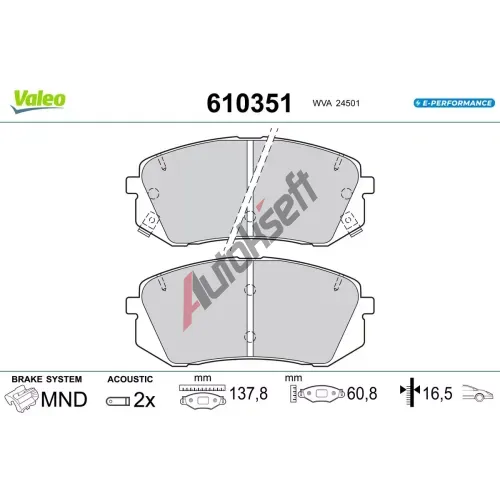 VALEO Sada brzdových destiček E-PERFORMANCE VA 610351, 610351