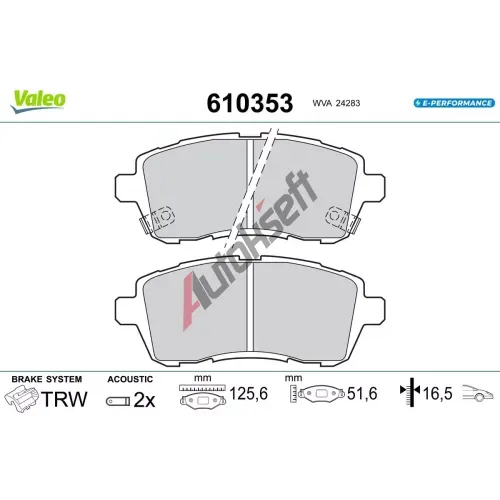 VALEO Sada brzdových destiček E-PERFORMANCE VA 610353, 610353