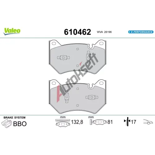 VALEO Sada brzdových destiček E-PERFORMANCE VA 610462, 610462