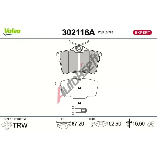 VALEO Sada brzdových destiček EXPERT VA 302116A, 302116A
