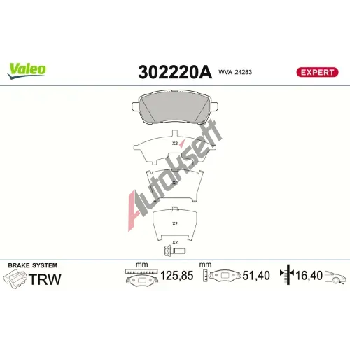 VALEO Sada brzdových destiček EXPERT VA 302220A, 302220A
