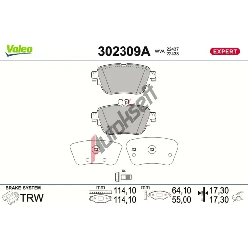 VALEO Sada brzdových destiček EXPERT VA 302309A, 302309A