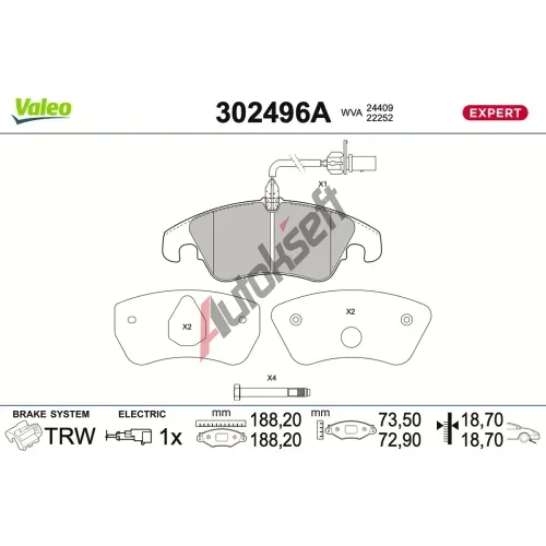 VALEO Sada brzdových destiček EXPERT VA 302496A, 302496A