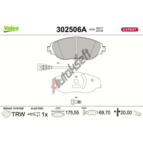 VALEO Sada brzdových destiček EXPERT VA 302506A, 302506A