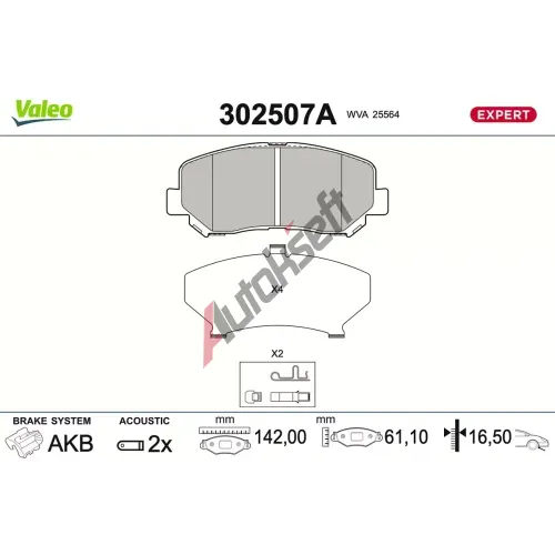 VALEO Sada brzdových destiček EXPERT VA 302507A, 302507A