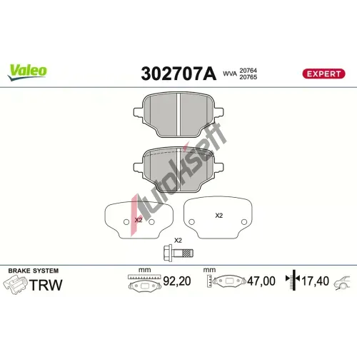 VALEO Sada brzdových destiček EXPERT VA 302707A, 302707A
