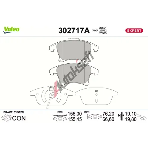 VALEO Sada brzdových destiček EXPERT VA 302717A, 302717A