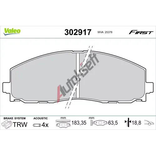 VALEO Sada brzdových destiček FIRST VA 302917, 302917