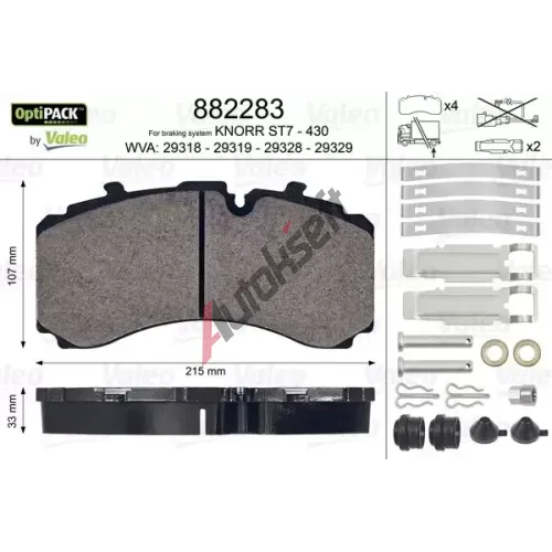 VALEO Sada brzdových destiček OPTIPACK VA 882283, 882283