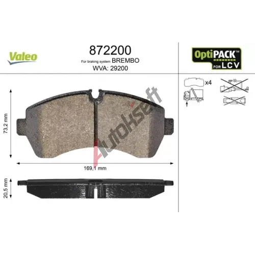 VALEO Sada brzdových destiček VA 872200, 872200
