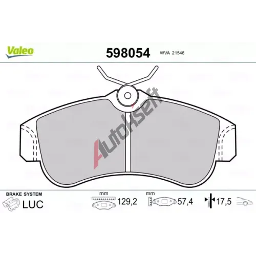 VALEO Sada brzdových destiček kotoučové brzdy VA 598054, 598054