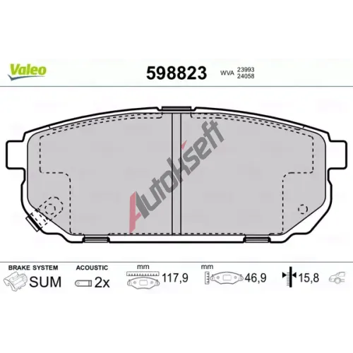 VALEO Sada brzdových destiček kotoučové brzdy VA 598823, 598823