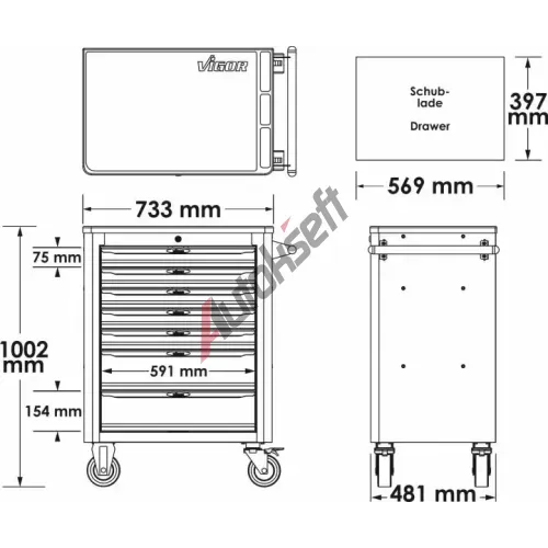 Krátké informace: VIGOR Držák dóz ? pro řady M ? řady L ? řady XL ? řady XD (kromě V4481-X) ? až 5 dóz ? V2393 ? d x š: 430 mm x 90 mm Všeobecné informace: •Pro dílenské vozíky řady M ? řady L ? řady XD ? řady XD (kromě V4481-X) •Uchovávání až 5 dóz •Rozměry: 430 mm x 90 mm
