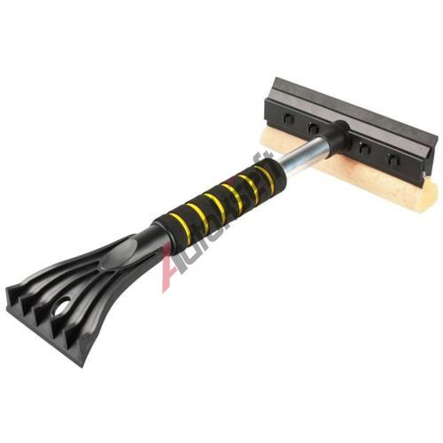 | Robustní škrabka na odstranění námrazy z oken automobilu s měkkou molitanovou rukojetí v kombinaci se stěrkou na mytí oken. | |