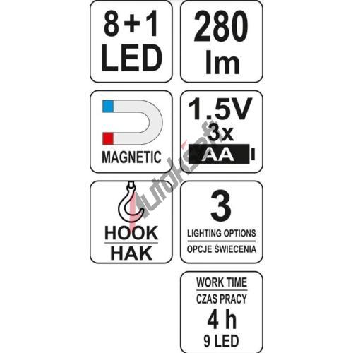 YATO Lampa montážní 8+1 LED, hák+magnet YTO YT-08513, YT-08513