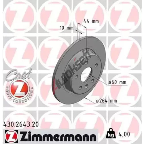 ZIMMERMANN Brzdový kotouč COAT Z - 264 mm ZIM 430.2643.20, 430.2643.20