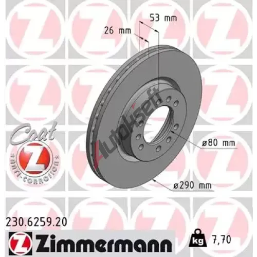 ZIMMERMANN Brzdový kotouč COAT Z - 290 mm ZIM 230.6259.20, 230.6259.20