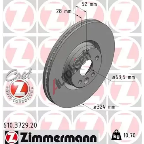 ZIMMERMANN Brzdový kotouč COAT Z - 324 mm ZIM 610.3729.20, 610.3729.20